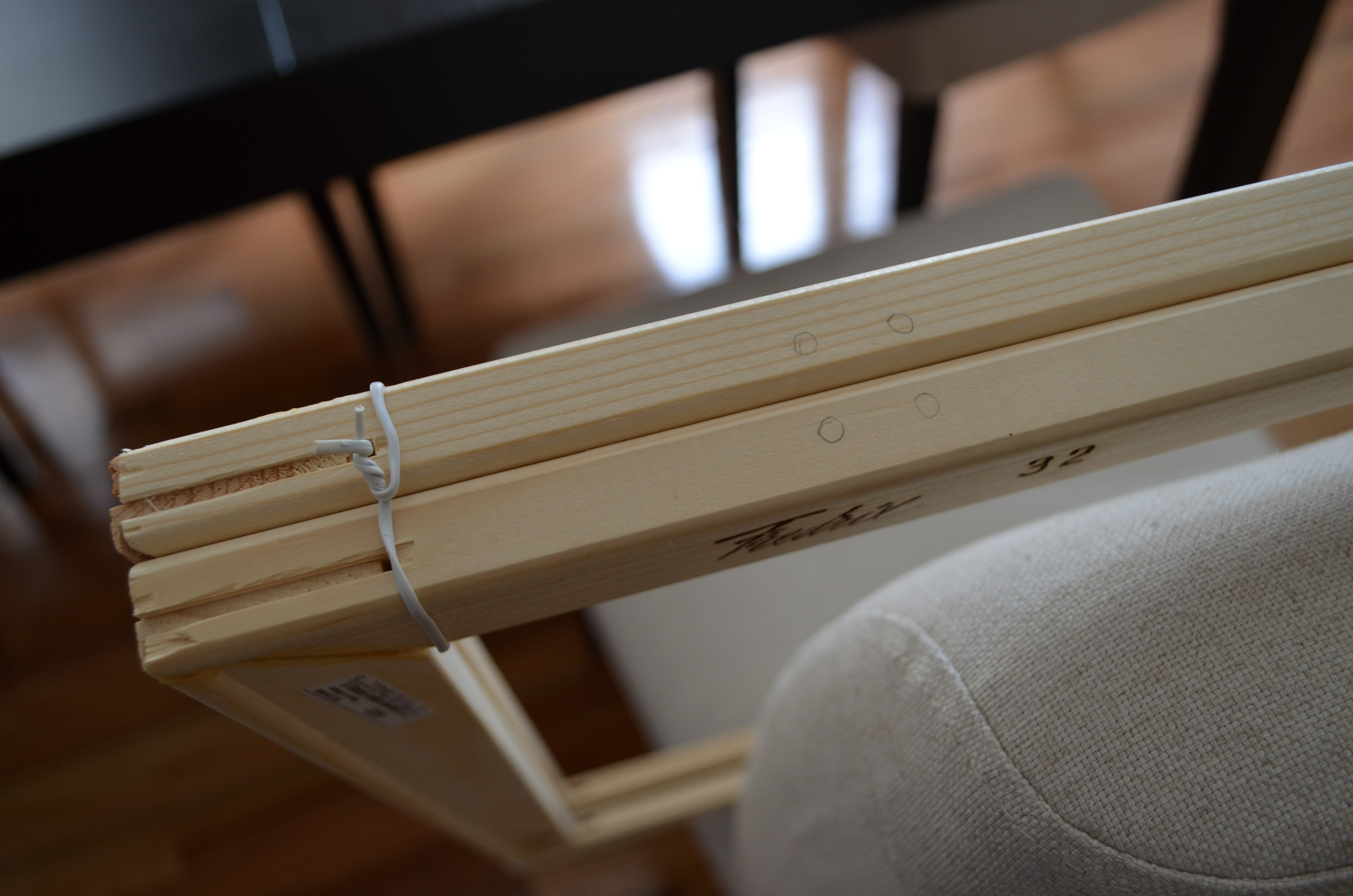 Canvas stretchers are available at art supply stores. If you’re lucky your art supply store may have pre-assembled frames, in which case you can skip this whole first part.