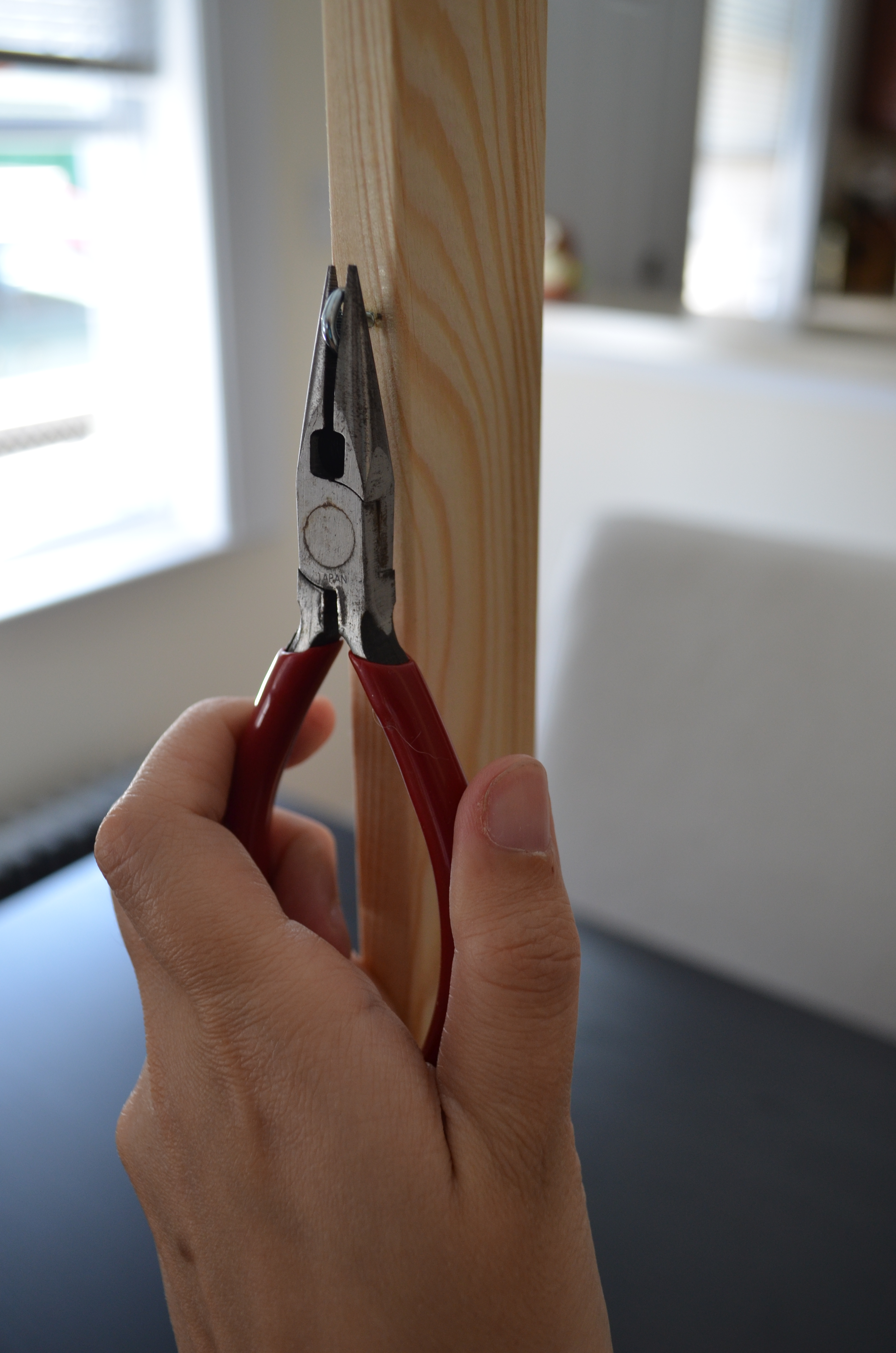 Since we aren’t going to be stretching a canvas over the frame, I added some wood glue to each of the corners on the “wrong side” so they would be nice and sturdy. I simply put a line of glue over the crevice and smoothed it down. Follow the directions for dry time (I left mine overnight).