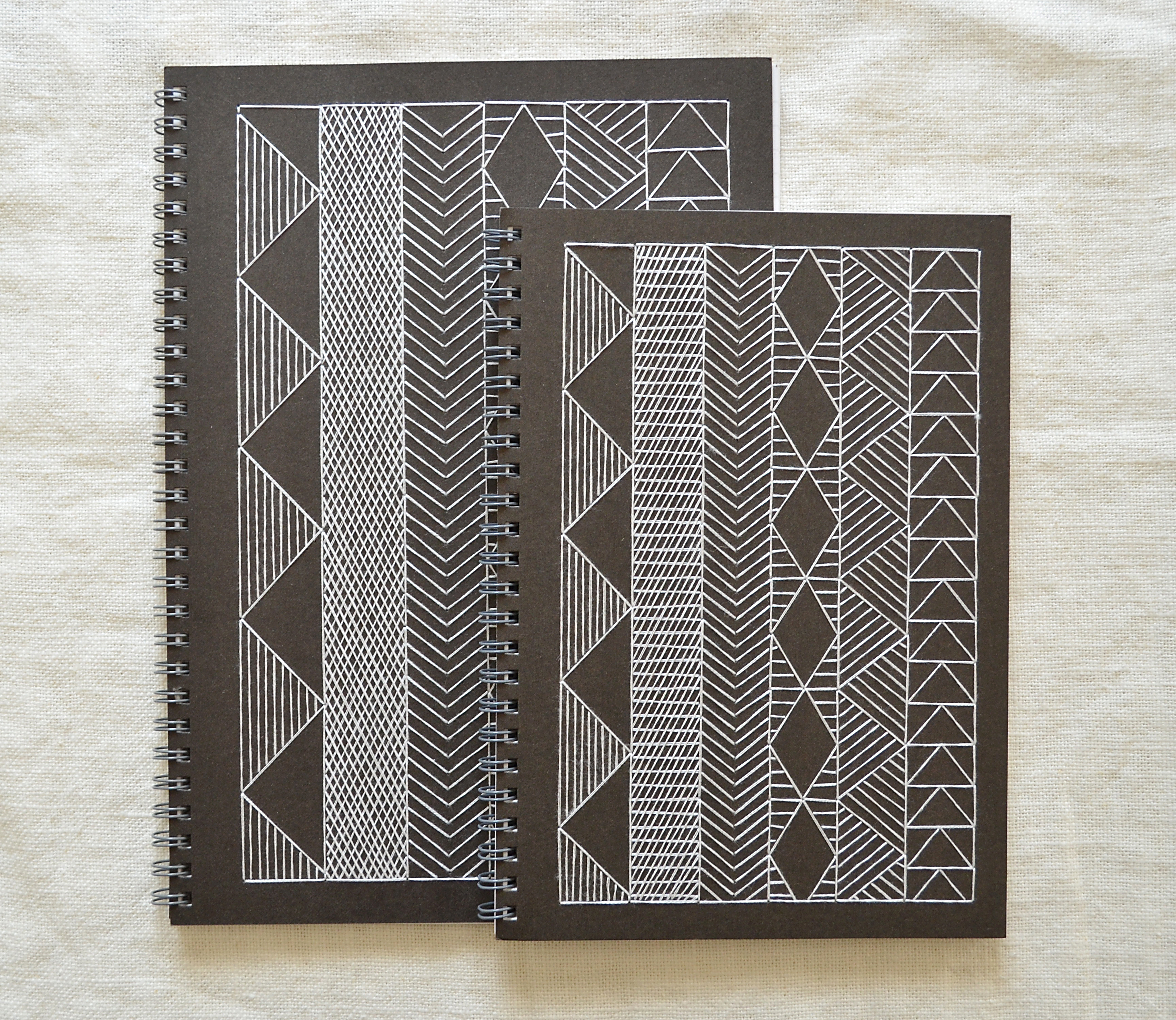 I’ve also listed the black and white notebooks that I premiered at the Handmade Cavalcade. These include the small and large versions of the notebooks inspired by the earth houses of Burkina Faso and modified chevron design.