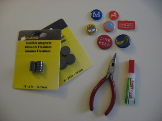 So quite awhile ago I wrote about turning the pins that once adorned my backpack into magnets. I mentioned that they were meant for another project, but lazy me didn’t get around to writing about it until now, while other projects are in progress but far from complete.