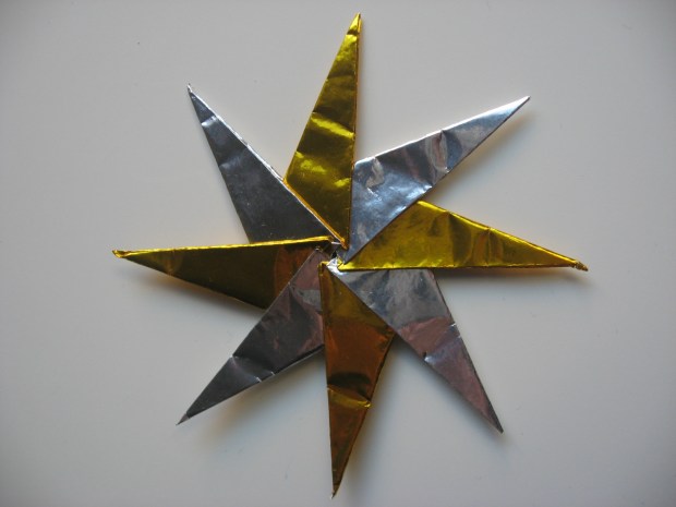 Late in the evening after decorating my tiny apartment-sized Christmas tree, I decided that I needed a nice big star to top the tree. This is an origami pattern I learned a long time ago, so long that I don’t remember the source. I regularly forget how to make it and then spend 20 minutes trying to make it work, so I thought I’d post it online in case I forgot again…pardon the dark photos. Continue reading