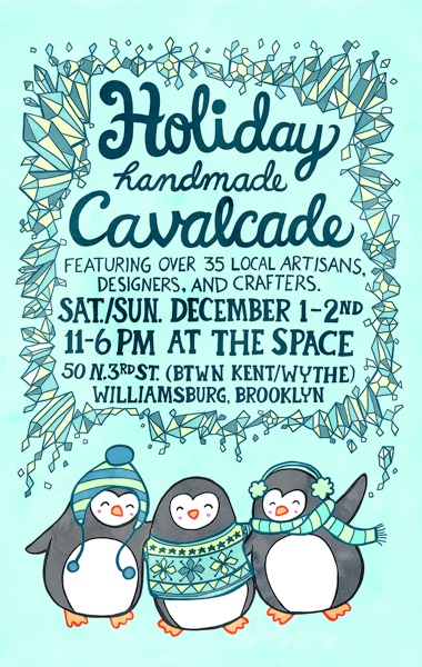 I am very happy to announce that I will be participating in my first ever craft show, Handmade Cavalcade! It’s a bi-annual event organized by the Etsy New York Team, also known as The New New. The team has been a great resource for me as I work on improving my shop, and I’m working hard to prepare for the event. It will take place over two days, December 1-2, just in time for the holiday shopping season. I’ve been creating displays, developing packaging and expanding product lines, which I will feature here in the upcoming weeks. Hope to see you there!
